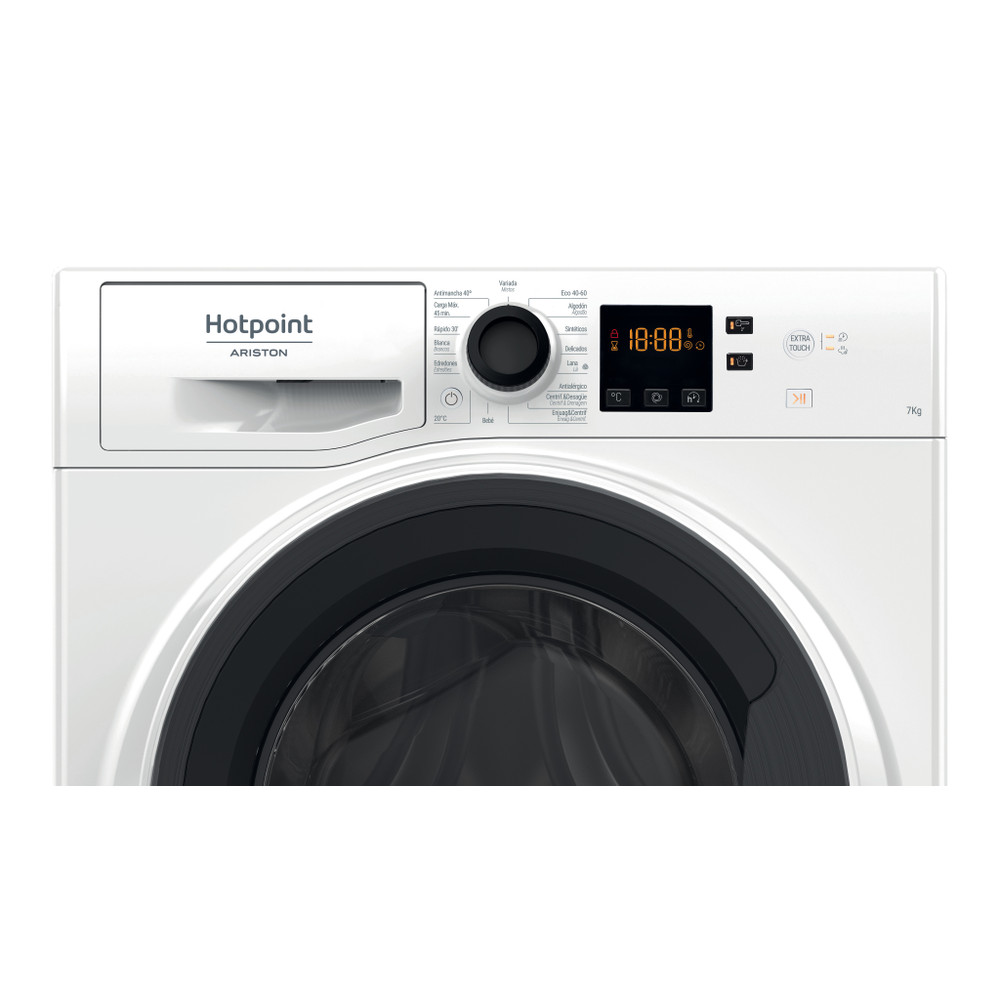 Características de esta lavadora de carga frontal de libre instalación de Hotpoint: amplia capacidad 7,0kg grande. Rápido, eficiente de recursos-1200 revoluciones por minuto de velocidad de centrifugado. Color blanco